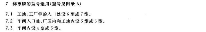 (4)危险和警告标志。危险和警告标志应设置在危险源前方足够远处,以保证观察者在首次看到标志及注意到此危险时有充足的时间,这一距离随不同情况而变化。例如,警告不要接触开关或其它电气设备的标志,应设置在它们近旁,而大厂区或运输道路上的标志,应设置于危险区域前方足够远的位置,以保证在到达危险区之前就可观察到此种警告,从而有所准备。